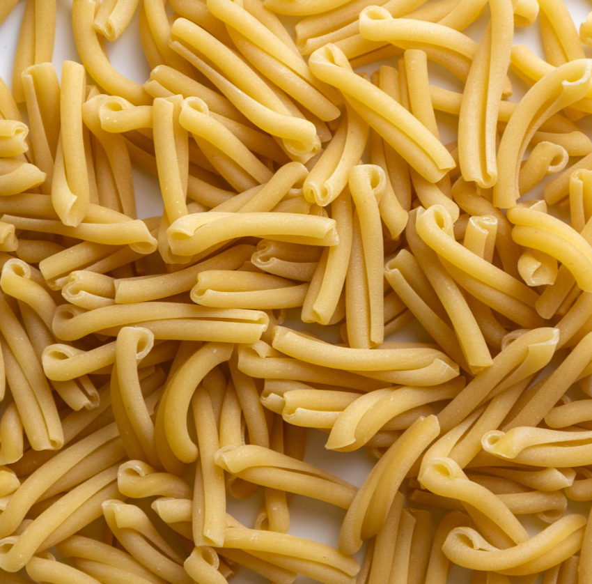 Casarecci is a traditional short, twisted, S-shaped pasta originating from Southern Italy, particularly Sicily. Its unique shape features a narrow groove down the middle and a rough, porous texture, which allows it to hold and absorb thick ad chunky sauces effectively. The name "casarecce" translates to "homemade" in Italian.